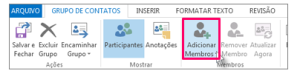 4- Após isto, Clique em “Adicionar Membros” e adicione as pessoas de seu catálogo de endereços ou de sua lista de contatos.